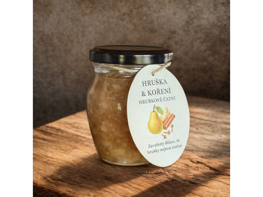 Poctivé hruškové čatní, které spojuje přirozenou sladkost zralých hrušek s jemnou pikantností cibule a koření. Výsledkem je harmonická chuť, která krásně doplní sýry, pečené maso i domácí sendviče.