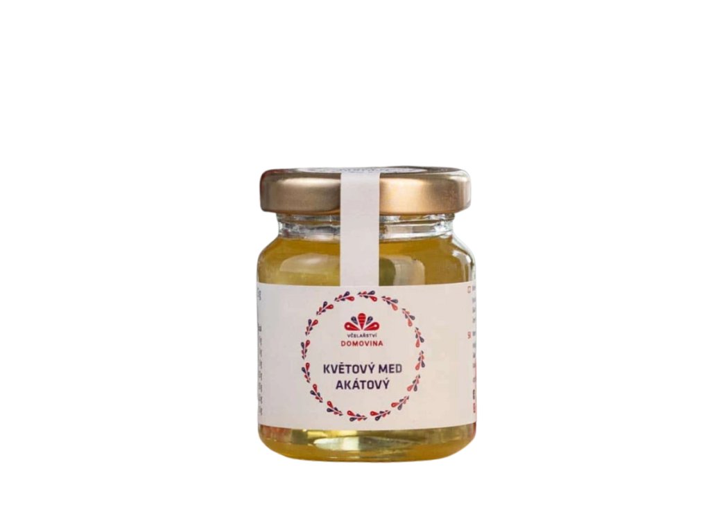 Květový med se skládá ze sladkých šťáv květů akátu. To znamená z pylu a z nektaru, který včely obohacují o výměšky svých žláz. Výměšky obsahují především enzymy přispívající ke štěpení cukrů. Voda tvoří asi jednu šestinu (14–19 %) obsahu medu. V našem medu nenajdete žádné přidané stabilizátory, cukerné sirupy nebo jiné ředící šťávičky.