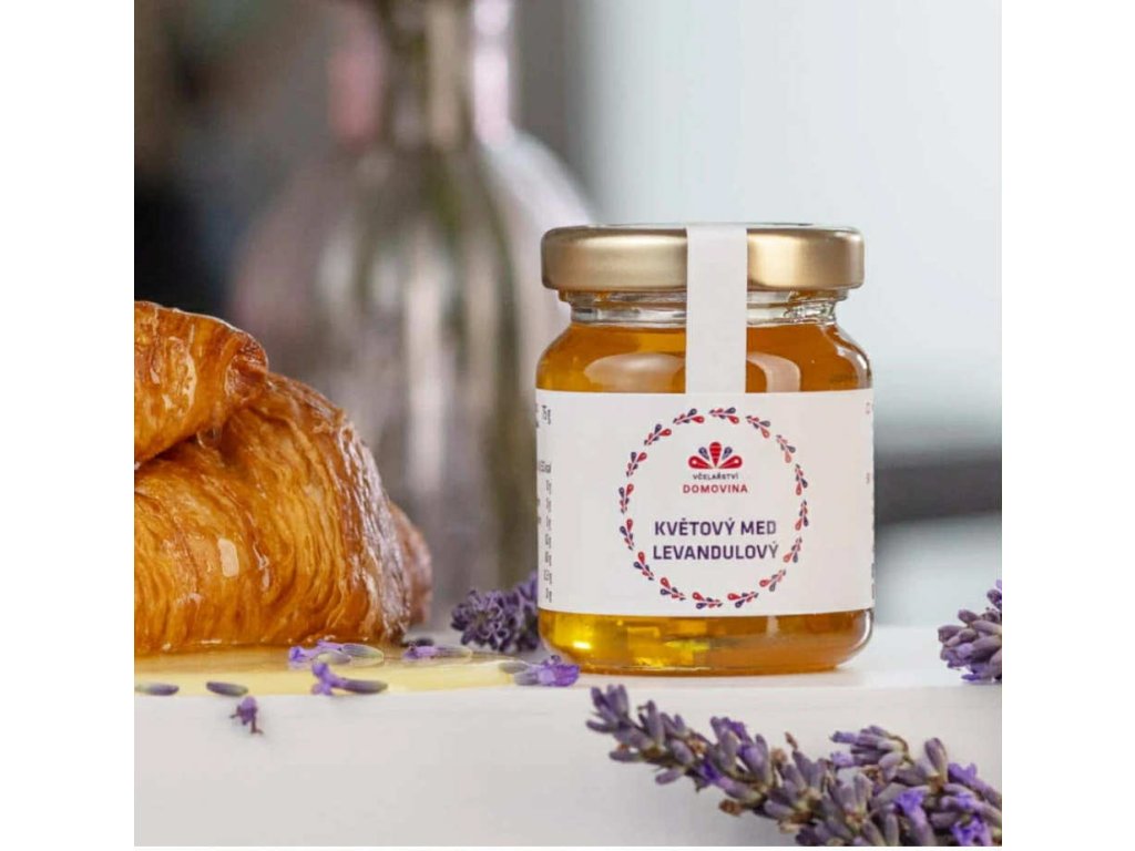 Květový levandulový med se skládá ze sladkých šťáv květů levandule. To znamená z pylu a z nektaru, který včely obohacují o výměšky svých žláz. Výměšky obsahují především enzymy přispívající ke štěpení cukrů. Voda tvoří asi jednu šestinu (14–19 %) obsahu medu. V našem medu nenajdete žádné přidané stabilizátory, cukerné sirupy nebo jiné ředící šťávičky.