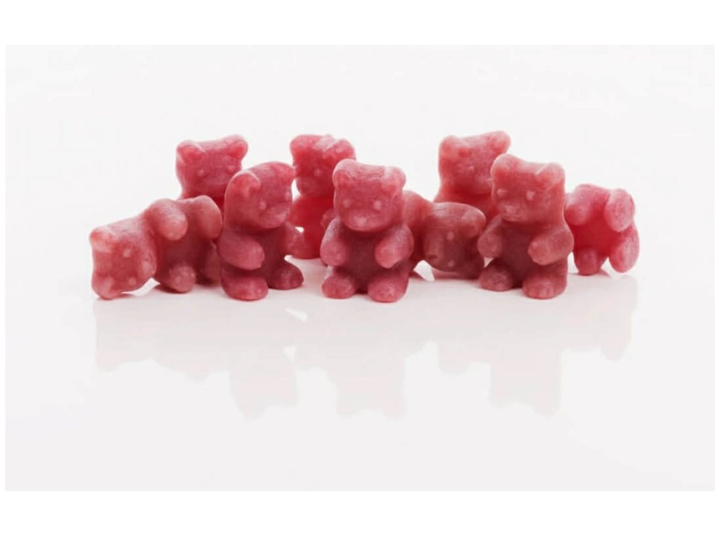 Složení: glukózový sirup, voda, želatina, cukr, bílá hroznová šťáva koncentrát, aroma, extrakt z bílého čaje1%, rostlinné extrakty: batáty, jablko, ředkev, třešeň,vosk, ovocný koncentrát: koncentrát jablečné šťávy, meruňková šťáva koncentrát, hrušková šťáva koncentrát