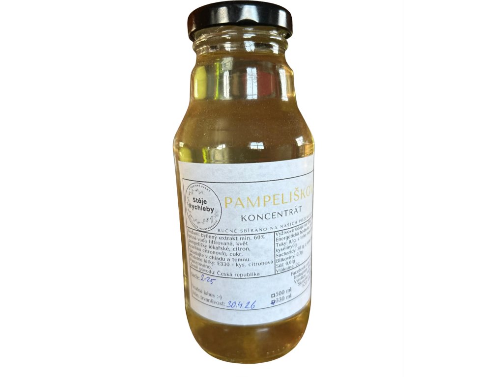 Složení: 60 % bylinný výluh (filtrovaná pitná voda, květ pampelišky lékařské, citron, kyselina citronová), cukr.