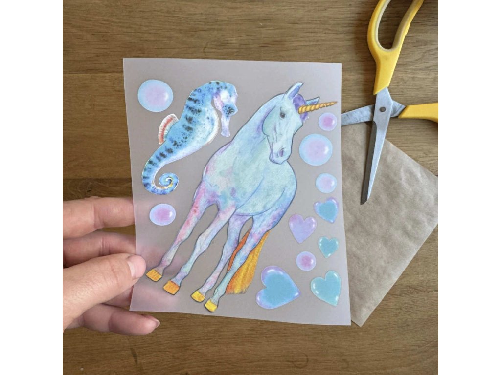 Aplikace tak snadná a zábavná, že nebudete chtít přestat! Stačí jen opatrně vystřihnout vybrané motivy, položit na vyžehlený textil a cca 10 - 15 vteřin pevným tlakem bez pohybu zažehlit. Po úplném vychladnutí fólii opatrně sloupněte a přes látku, nebo pečící papír potisk znovu pod silným tlakem zažehlete.